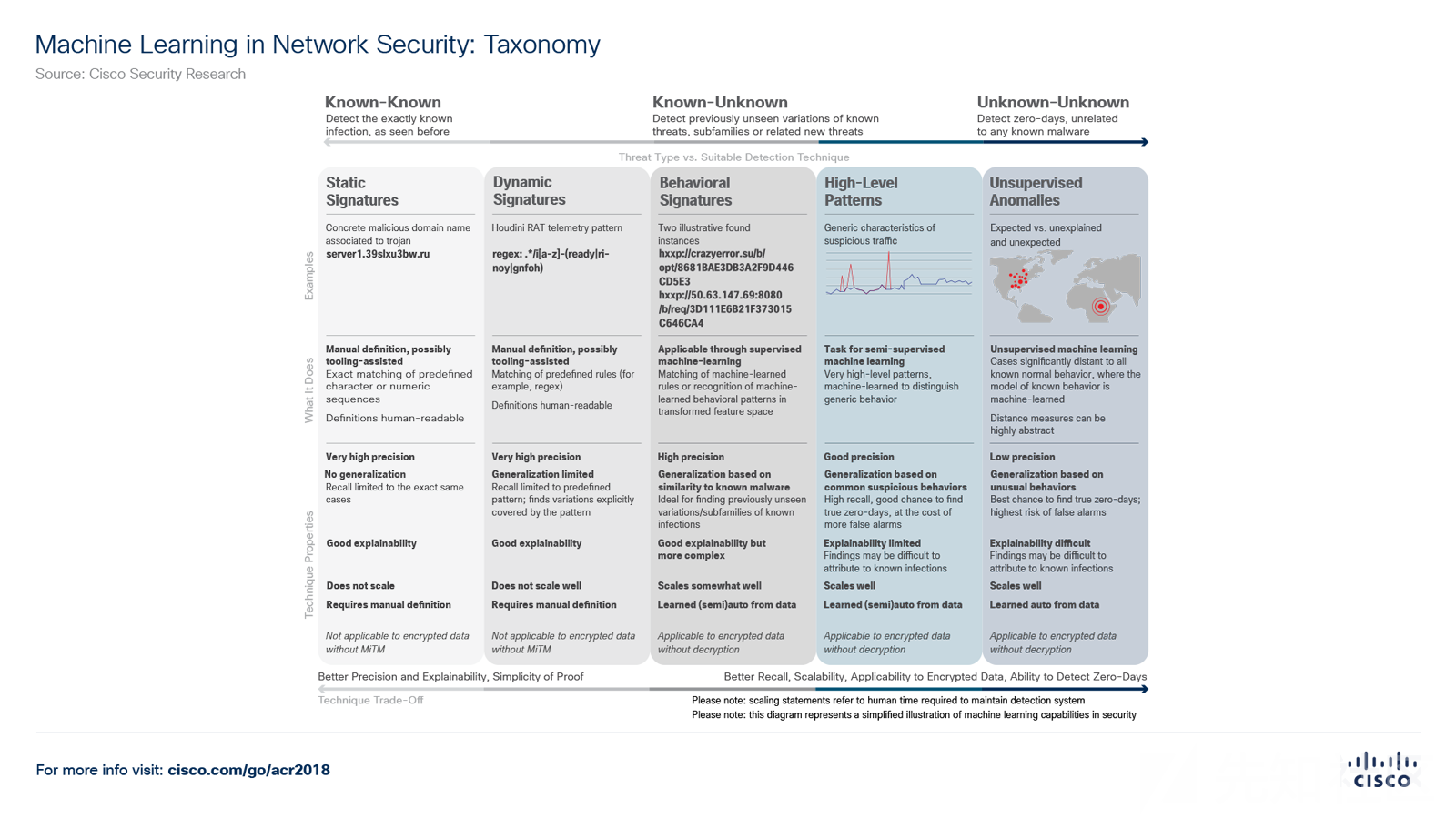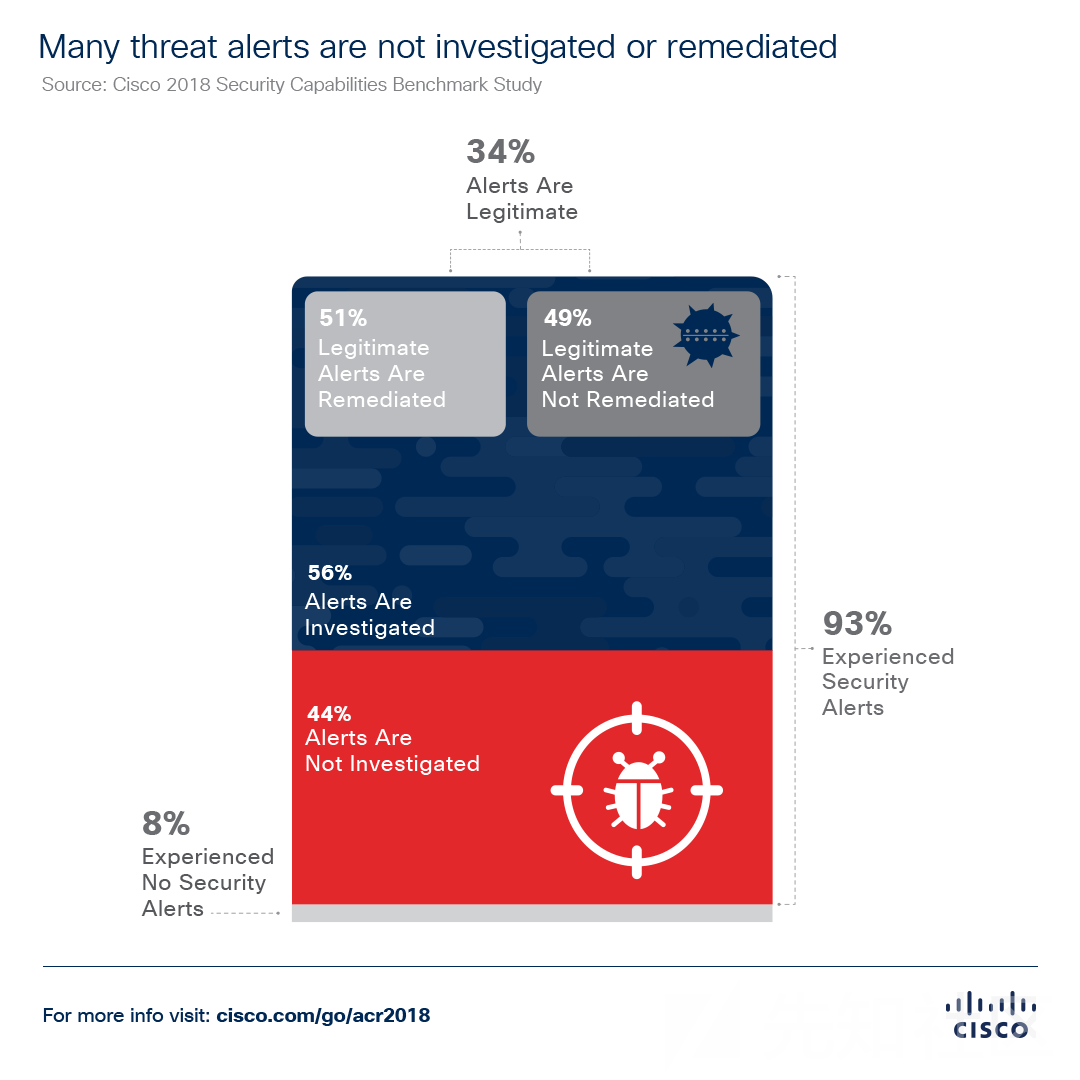 在之前的研究(Cisco 2018 Security Capabilities Benchmark Study)中发现,缺乏有经验的人员是企业中增强安全防御能力的一大障碍。而机器学习和人工智能这样自动化和智能化的工具可以帮助防御者克服技能和资源的差距,让其可以更有效、更好地识别和响应已知和新出现的威胁。
