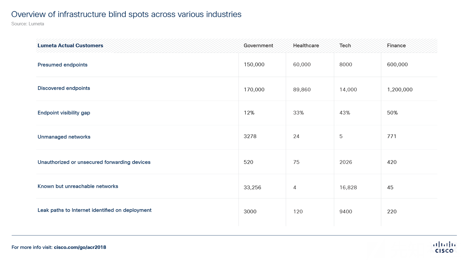 Lumeta的研究人员发现leak path的数量在不断增长,尤其是在云环境中,因为云环境中的网络可见性和可控性都降低了。许多恶意攻击者在发现或创建了leak path后是不会马上使用的。他们会用这些leak path来安装恶意软件、安全勒索软件、窃取信息等。一些攻击者还会使用加密、混淆等技术啊来避免被检测到。