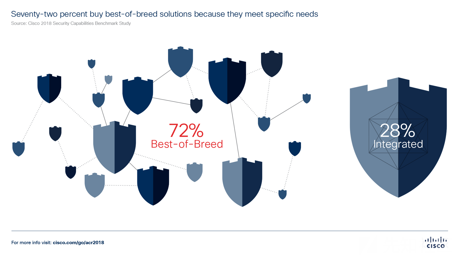 当使用的安全产品变多以后,如何处理管理复杂的安全环境呢?best of breed方法就是安全团队对每种安全需求选择最佳的安全方案,安全专家也认为这是最佳性价比的。