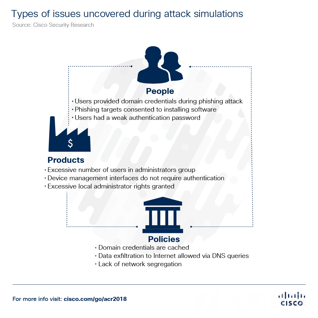 面临潜在的损失和对系统的恶意影响,企业单单依赖技术来防御已经不行了。也就是说需要寻找其他的机会来改善安全,比如用策略和培训用户。如果企业单独使用技术来修复安全漏洞,在模拟攻击者只能解决26%的安全问题。如果企业单独使用策略来解决安全问题,只能解决10%的安全问题;利用培训只能解决4%的安全问题。