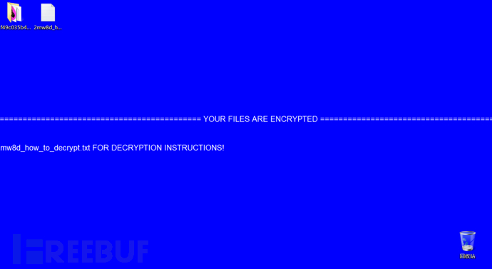 勒索病毒会修改桌面壁纸为蓝色,如下所示: