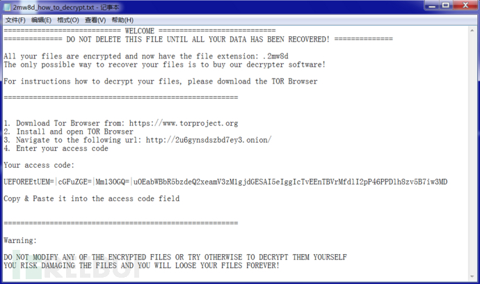 输入勒索提示信息中的Access Code码之后,如下所示: