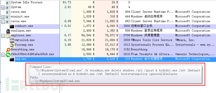 此勒索病毒最后还会删除磁盘卷影副本等操作,如下所示: