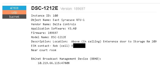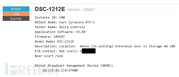 暴露电话号码和位置的来自BACnet设备的响应示例