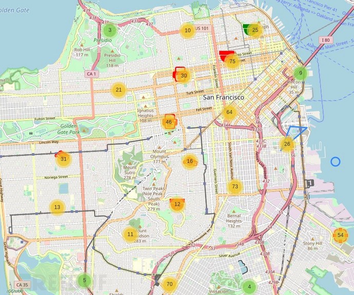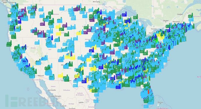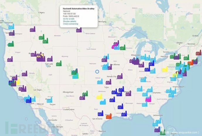 在Kamerka的最新的版本中,你可以扫描一个国家的ICS设备,并将结果放到一个包含所有详细信息的地图中,包括某个特定 IP 地址的所有人信息。上次研究展示的是波兰和瑞士,而这次我要展示的是美国暴露的2.6万台设备。为了收集比平时更多的数据,我不得不稍微调整一下脚本,并将数据放入Elasticsearch中以便于管理。所有设备同时显示时,地图会变得模糊,但如果存储了信息,就可以根据具体的查询创建不同的地图。