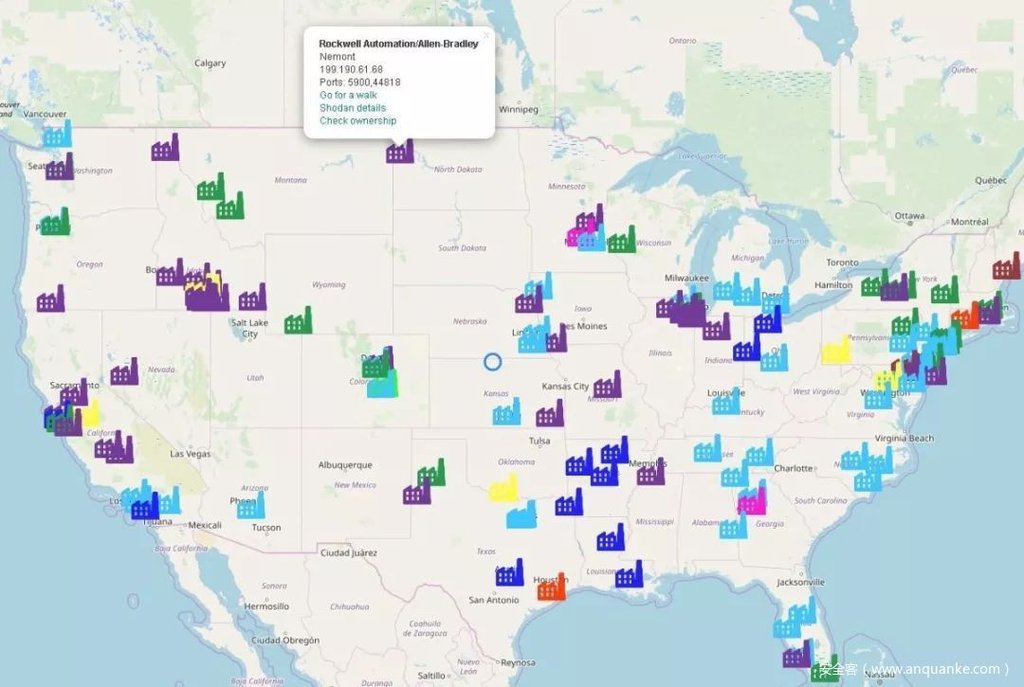 Kamerka展示的包含美国1.5万个暴露设备的地图