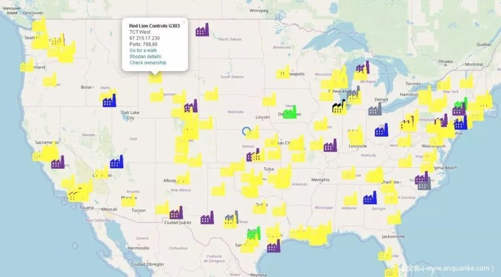 那么问题就来了,我们怎样才能找到负责关键基础设施的设备和建筑呢? 第一种方法是使用计算生成的地图,检查名胜古迹附近的每个设备,如城市或政府大楼。第二种方法是使用逆向搜索,从设备中寻找工作站名称、描述或位置的蛛丝马迹。就像前面提到的那样,Niagara Fox和BACnet有时会暴露不该暴露的信息,包括街道名称、位置或设施名称。结合其他的指标的信息,你就可以找到符合信息描述的建筑物。虽然IP地理定位很难精确地指向确切的地点,但它可以准确地显示城市,有时还可以显示设备所在的街道。