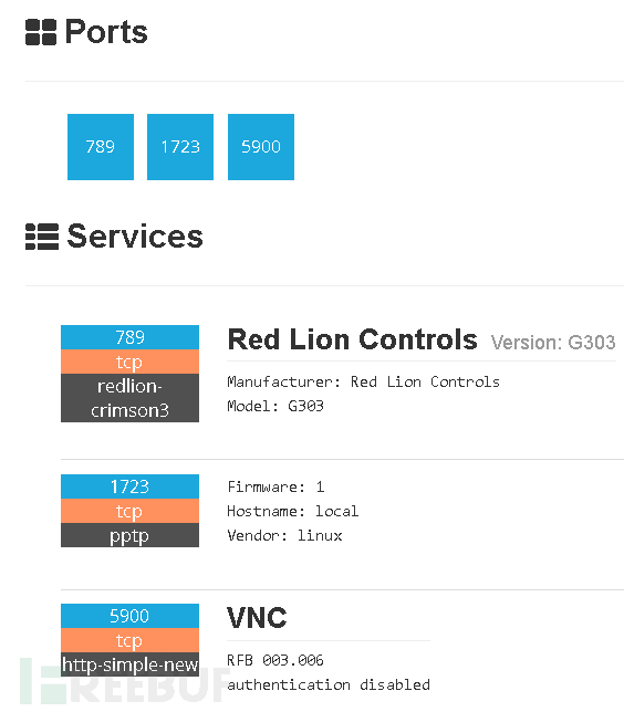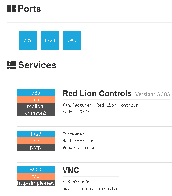 同样,在ICS设备上运行不带身份验证的虚拟网络计算机(VNC)也不是个好的主意。这是完全不应该发生的事情,这是一个明显的错误,或者是你对自己的基础设施缺乏了解。在不需要身份验证的情况下,访问并获得对设备的控制这件事对敌对者来说简直轻而易举。当然,我们不会就认为它会危及整个设施,但这对敌对者来说确实是一个良好的开端。因为所有VNC开放5900端口作为人机接口(HMI)运行。