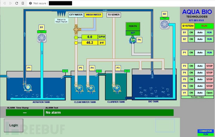 VNC并不是设备暴露的唯一方式。某个制造商的设备上的80端口在没有身份验证的情况下返回人机接口(HMI)。虽然有些网站需要登录以进行交互,但有的网站的登录操作并非必需步骤。
