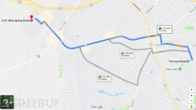 在这种情况下,它离实际目的地西春街 2151号(2151 West Spring Street)有 3.5英里远。