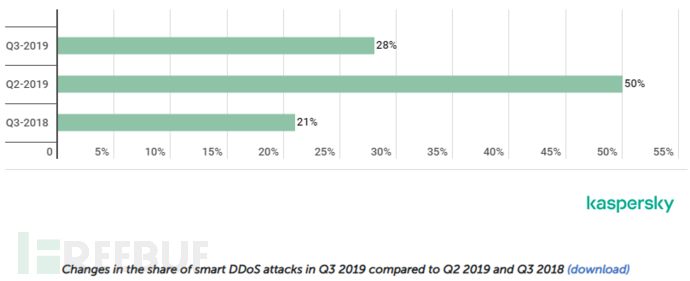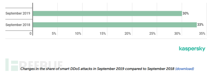 根据卡巴斯基DDoS防护的数据,第三季度智能攻击(即技术更先进、更巧妙的攻击)数量较上一季度大幅下降,这一指标与去年同期相比,足足有两倍多的增长。