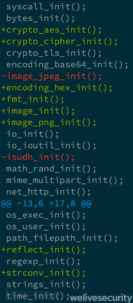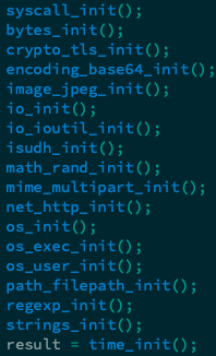 Sednit之前使用的Golang下载器会收集大量目标设备的信息,并将其发送至C2服务器。但这一个下载器在数据收集方面轻量化了很多。它的main_init()函数包含的库会初始化下列函数,下列函数的功能和作用想必大家可以直接看得出来: