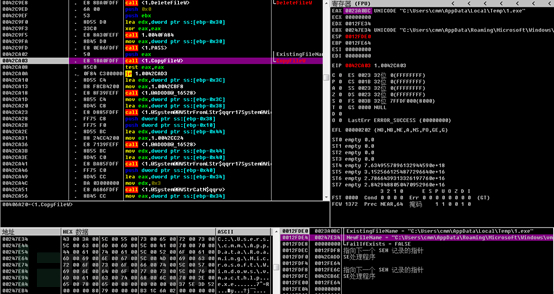 将当前进程拷贝到C:\Users\cmm\AppData\Roaming\Microsoft\Windows\vmacthlp.exe,在拷贝之前尝试先删除vmacthlp.exe: