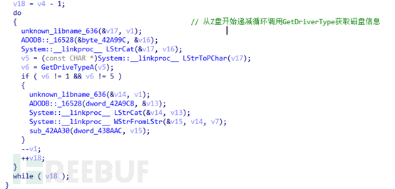 从Z盘开始递减循环调用GetDriverType获取磁盘信息: