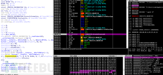 带参启动之后实际动作会在offset_D074的位置检查是否有参数“-start”,如果由上面的创建进程执行ShellCode改为如下动作:
