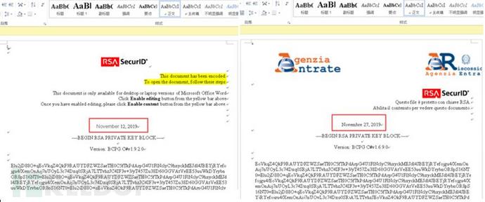 标题为RSA SecurID的不同变种的诱饵文档,其文档内容不同: