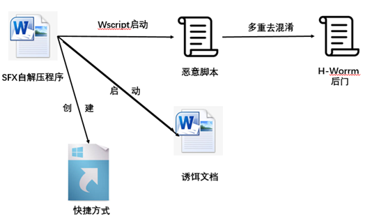 在对该手法溯源过程中我们发现了相关报告[6],其描述的攻击手法与该样本完全一致,都使用了H-Worm的“Beta”版本;此外文中提到的组织的整体攻击流程和目标与本次活动高度一致:中东、SFX、H-worm 。这些特点都为我们后续的溯源过程提供了佐证。