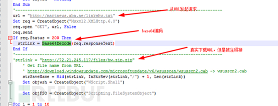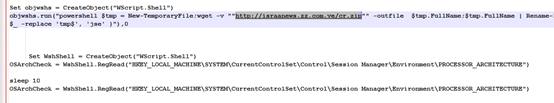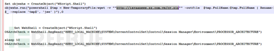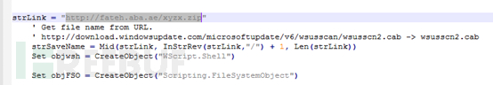 在2019年8月的某样本中意外的存在两个脚本文件,其中包含了一个关键恶意URL:hxxp://fateh.aba.ae/xyzx.zip,该地址目前已经失效,通过对海量样本进行筛选挖掘,捕获到该文件。