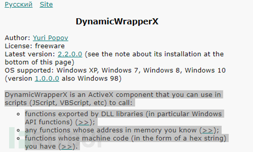 通过对该文件的分析我们了解到该文件实为DynamicWrapperX文件,该文件由Yuri Popov于2008年编写[5],可以帮助脚本语言调用Windows API从而完成更多操作: