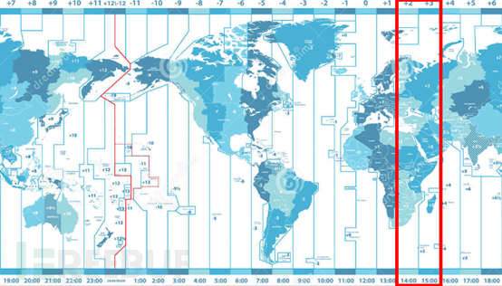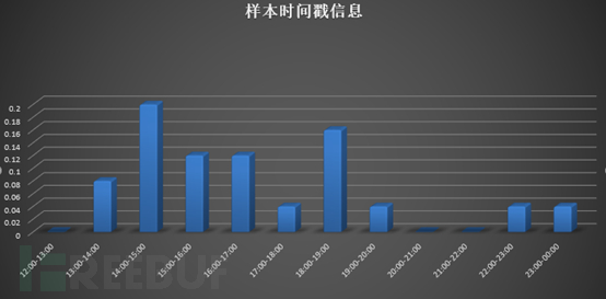 通过对样本信息进行汇总,我们获取了一定数量的样本时间信息,后续对其归类发现该组织主要工作时间集中在北京时间UTC +8的(13:00—20:00)内,按照正常作息时间(早八晚五),基本可以确定此次攻击来自于(UTC +2—UTC+3)时区内: