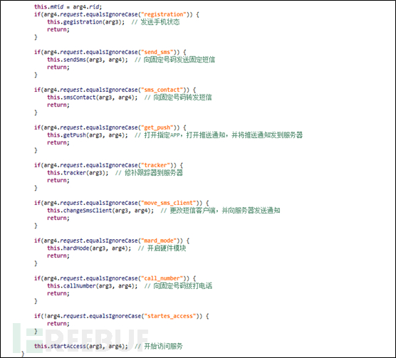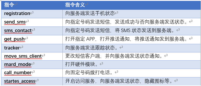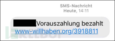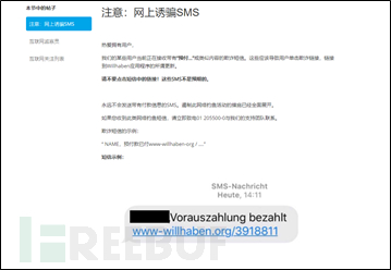 此次发现的通过仿冒“Willhaben”的恶意程序,其主要目是进行钓鱼。恶意程序运行后会诱骗用户激活设备管理器,并可通过远控指令隐藏APP图标,从而达到保护自身;其会通过服务端下发远控指令,包括向服务器发送用户手机状态、发送用户手机号码、发送用户手机短信、发送用户已安装的APP信息、实时对用户手机进行监控等。攻击者会根据获取到的信息,向指定用户发送钓鱼短信,诱骗用户打开钓鱼页面并预付款,从而达到诱骗钱财的目的。