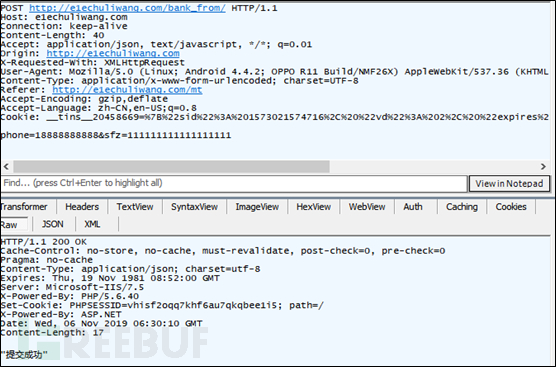 当用户手机停留在此页面时,攻击者会通过用户提供的***账号、密码进行转账操作,并诱骗用户填写银行二次确认短信,从而完成转账操作。
