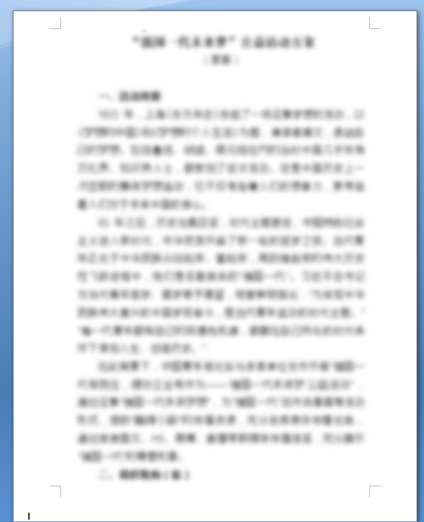 如该诱饵,伪装为word图标的可执行文件,并在文件描述里修改成了Microsoft DOCX,用于迷糊被钓鱼者。执行恶意文件后,会释放诱饵文档2019年5月标准干部培训课程通知.docx,并且打开,让受害者以为打开的就是word文档。而打开后的文档为模糊处理的文档,诱使受害者启用文档中的宏代码以查看文档内容,实际上启用宏之后,仍然看不到正常的内容: