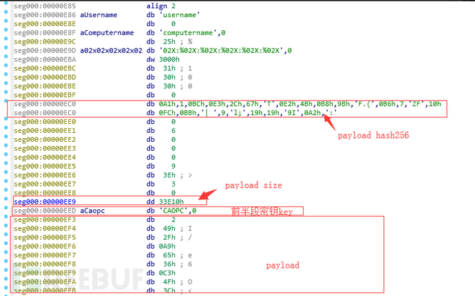 可以看到,某次针对国家某单位的攻击中,使用的密钥为: