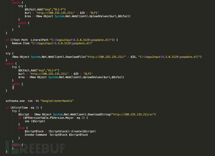 此外,还会还会通过powershell,创建计划任务来下载持久化的工具: