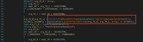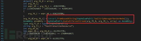 该母体文件是通过.NET编译,需要多层解密和去混淆。其中使用了BASE64加密和自行定义的异或加密等方式: