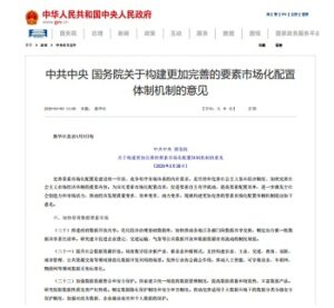 近日,《中共中央国务院关于构建更加完善的要素市场化配置体制机制的意见》正式公布(以下简称《意见》)。