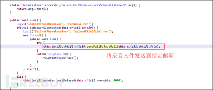 后台开启服务将通话录音发送到指定邮箱: