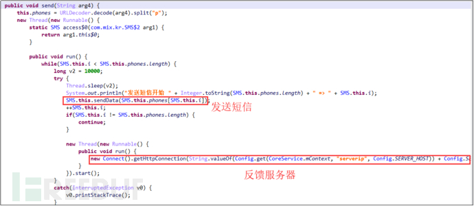 接收到指令“sendsms”,发送任意短信: