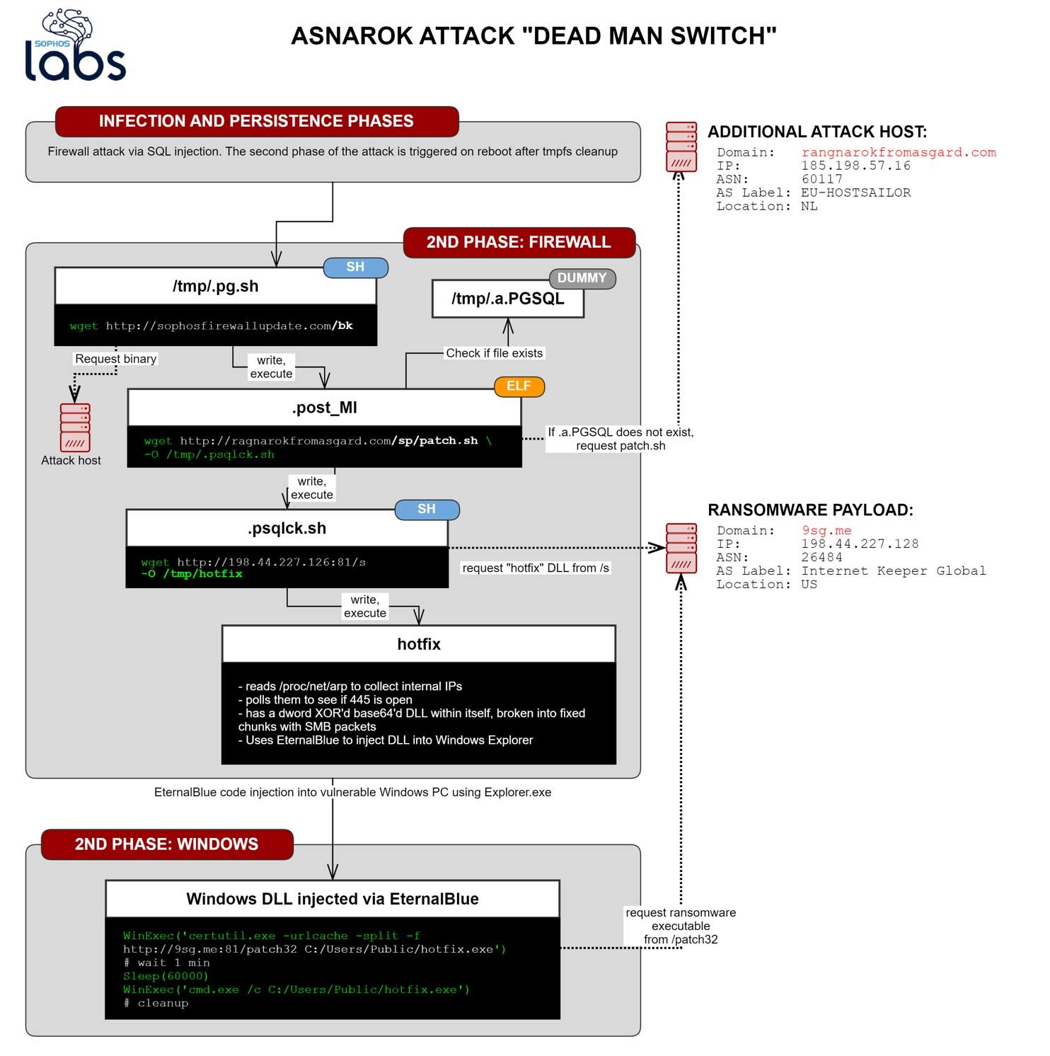 首先,他们开始在被黑客入侵的防火墙上更改其脚本,以使用“失能开关 ”,如果删除了特定文件并重新启动了设备,则稍后将激活勒索软件攻击。