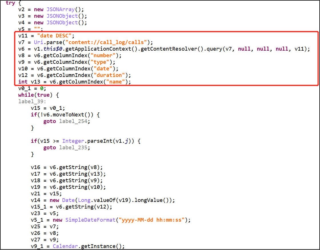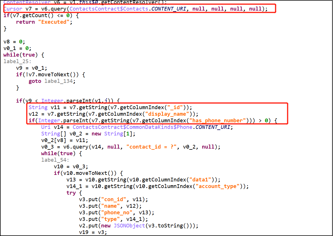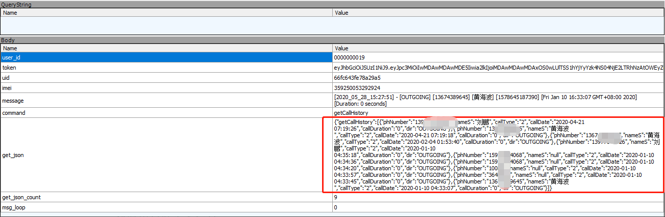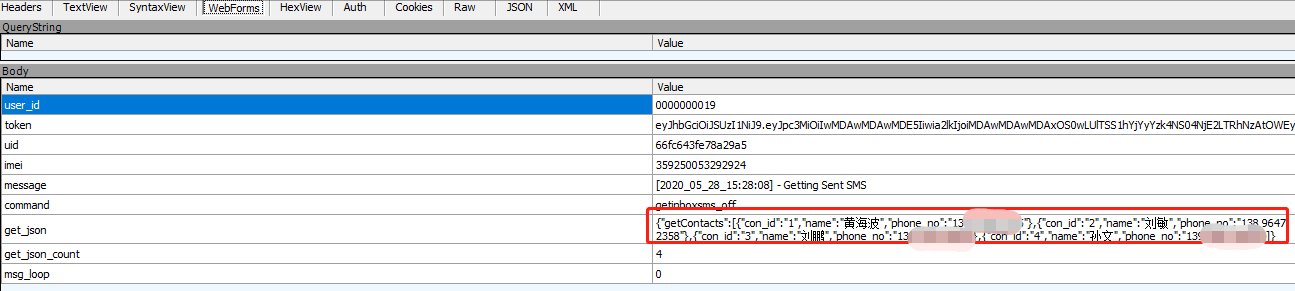 上传用户设备联系人信息:应用在上传用户联系人信息时会带上“getContacts”命令标识。