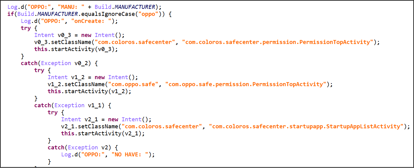 在恶意程序代码中我们发现了恶意软件对oppo设备的检测。oppo作为国内非常流行的一款手机设备,无论在国内还是国外都拥有大量用户。