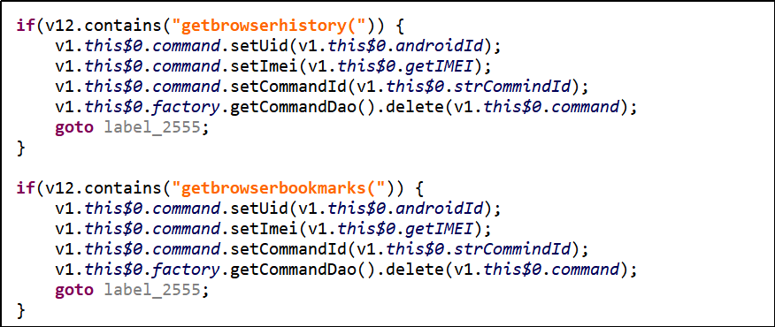 该恶意软件下发的远控指令“getbrowserhistory”、“getbrowserbookmarks”并未实现相应的操作。com.serenegiant开源包的相应功能也并未使用。由此可看出该恶意程序并未开发完全,之后可能会不断更新完善其恶意代码功能。