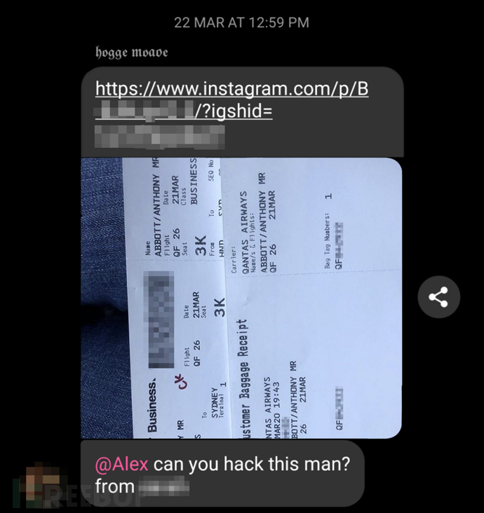 作者通过澳大利亚前总理Tony Abbott在Instagram朋友圈的晒图,从其中的登机牌照片入手,以开源网络情报方式(OSINT)发现了澳大利亚前总理Tony Abbott的详细护照信息。我们一起来看看。