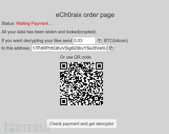 在最近的这些攻击中,ech0raix勒索软件要求的赎金从0.024比特币(1200美元)到0.06比特币(3000美元)不等。由于一些用户没有额外备份文件,他们不得不支付赎金才能恢复文件。