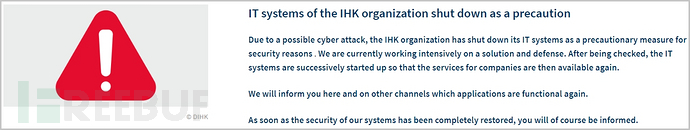 在被攻击之后,DIHK在网站上发布了一份简短的通知,并表示关闭系统和数字服务是预防网络攻击造成更大损失的一种措施,也让IT团队有更多的时间摸清此次网络攻击的情况,并针对性的给出解决方案,提高系统的防护能力。
