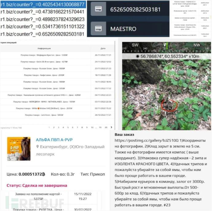Resecurity 在报告中提到,这些安卓移动应用程序能够传输有关毒品订单的详细信息,还可以发送运输者留下的毒品包裹的地理坐标,以方便取件。为了防止被索引,此类信息以图像的形式传输,[...] 注释则可能包含包裹埋藏在地下的深度或任何其他可用的详细信息。